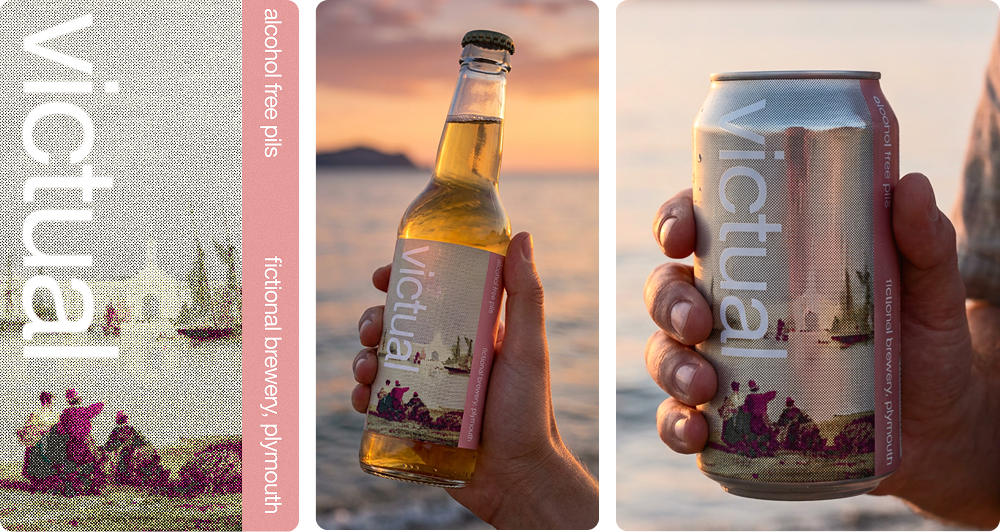 Photoshop's built-in halftoning is pretty meh, and I sadly don't have easy access to a screen printing setup anymore. This free online tool from Daniel Petho gives you excellent control over an authentic CMYK halftone emulation — proper dot patterns, per-channel angle control, all the nerdy details. I plopped the Victualling Office painting into it and used it as the basis for a quick fictional alcohol-free beer label from Fictional Brewery.